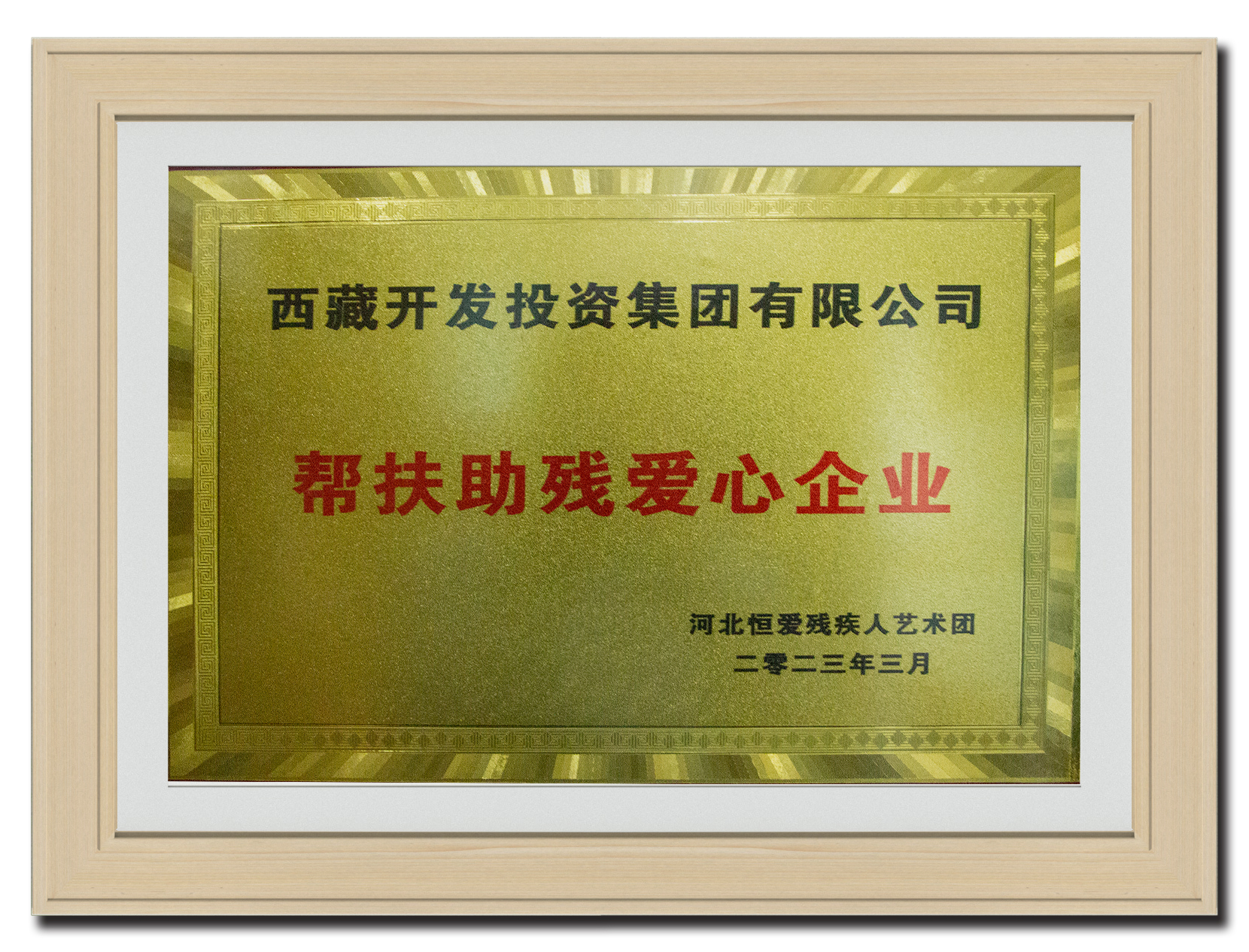 2023年3月 榮獲幫扶助殘愛心企業(yè)獎
