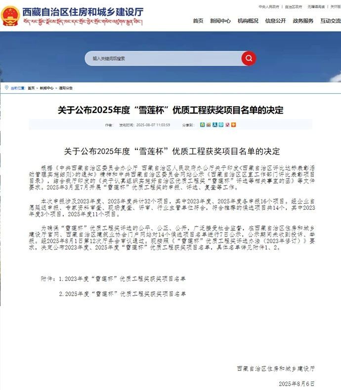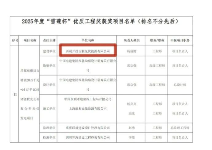 8月7日,西藏自治區(qū)住房和城鄉(xiāng)建設(shè)廳公布2025年度“雪蓮杯”優(yōu)質(zhì)工程獲獎(jiǎng)項(xiàng)目名單,由西藏開投吉雅光伏公司投資建設(shè)的昌都察雅縣吉塘鎮(zhèn)20萬千瓦+16萬千瓦時(shí)儲(chǔ)能牧光互補(bǔ)復(fù)合型光伏發(fā)電項(xiàng)目榮獲該獎(jiǎng)項(xiàng)。