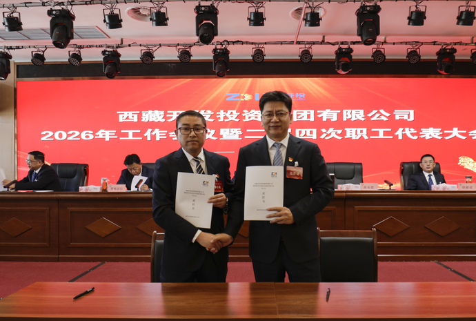 會上,集團管理方首席代表肖長歌與集團職工方首席代表羅布次仁簽訂了《集體合同》及專項附屬集體合同。肖長歌代表集團與各部門、各單位代表簽訂了今年的目標責任書。