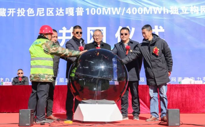 西藏開投色尼區(qū)達嘎普獨立構(gòu)網(wǎng)型儲能項目并網(wǎng)儀式現(xiàn)場。達娃 攝