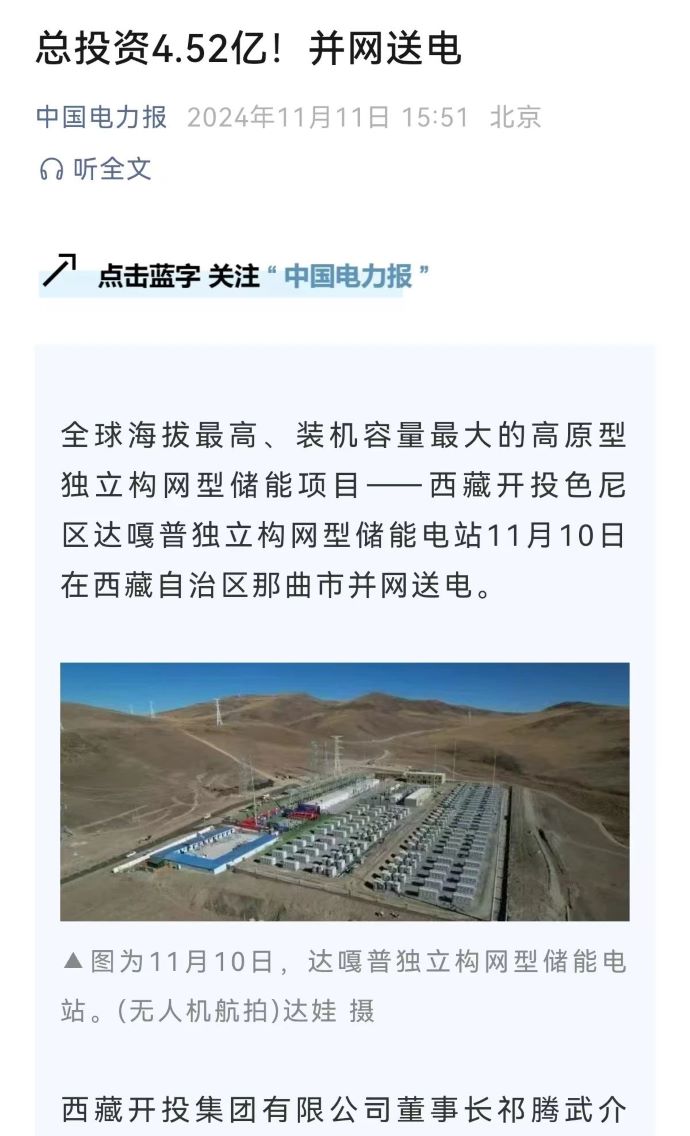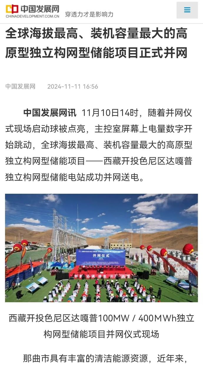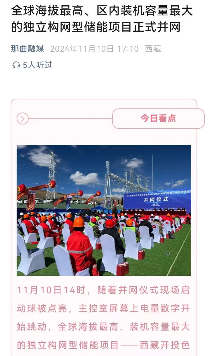 實力刷屏!各級媒體聚焦報道西藏開投色尼區(qū)獨立構(gòu)網(wǎng)型儲能項目