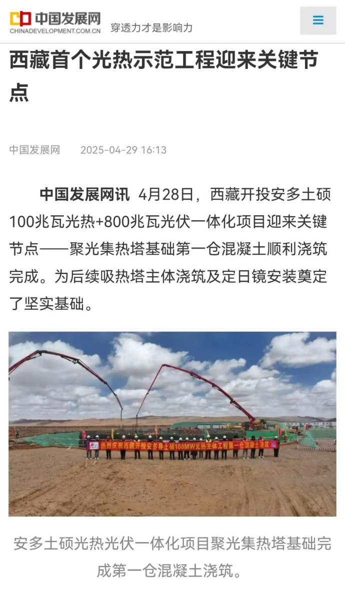 媒體報(bào)道丨西藏首個(gè)光熱示范工程迎來關(guān)鍵節(jié)點(diǎn)