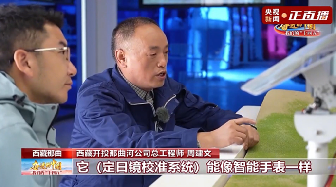 西藏開投那曲河公司總工程師周建文說:“它是我們電站的一個(gè)定日鏡,它很智能,它頭頂裝了太陽能追蹤器。它(定日鏡校準(zhǔn)系統(tǒng))能像智能手表一樣,監(jiān)測(cè)'心跳',能夠?qū)崟r(shí)監(jiān)測(cè)太陽的方位角和高度角,精度達(dá)0.1度。”