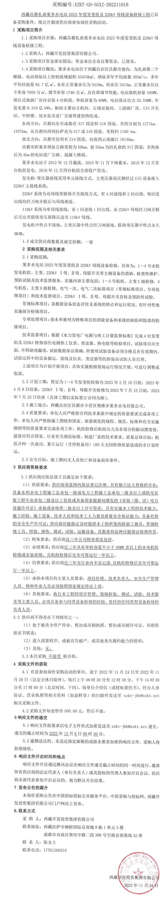 220kV母線設(shè)備檢修工程詢價(jià)采購公告