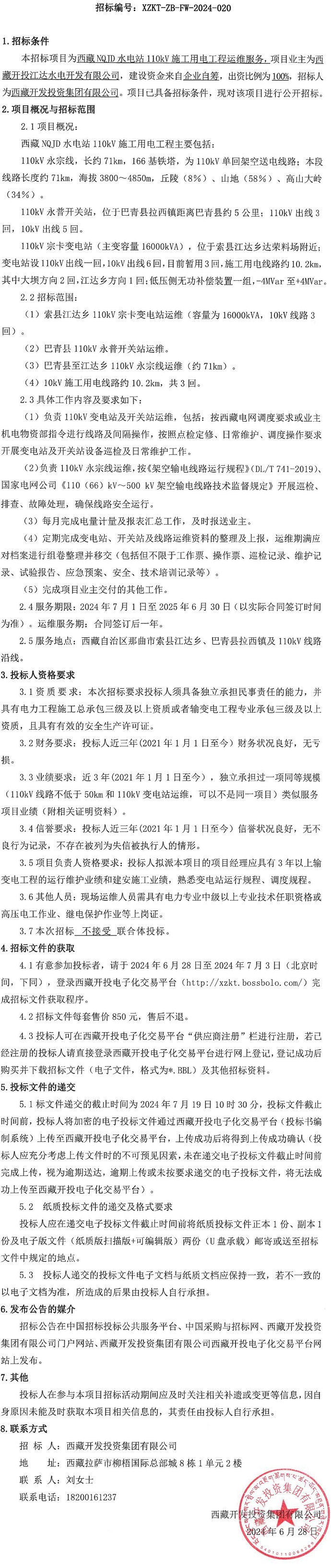 西藏NQJD水電站110kV施工用電工程運(yùn)維服務(wù)招標(biāo)公告