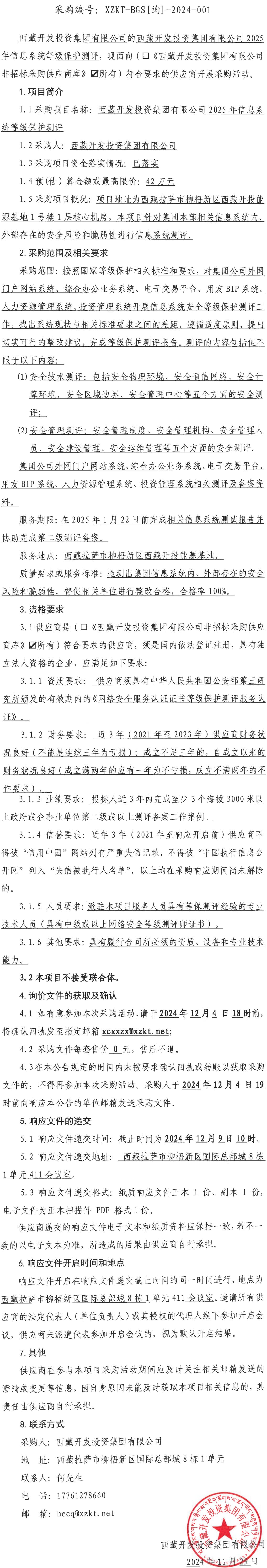 西藏開發(fā)投資集團有限公司2025年信息系統(tǒng)等級保護測評詢價采購公告