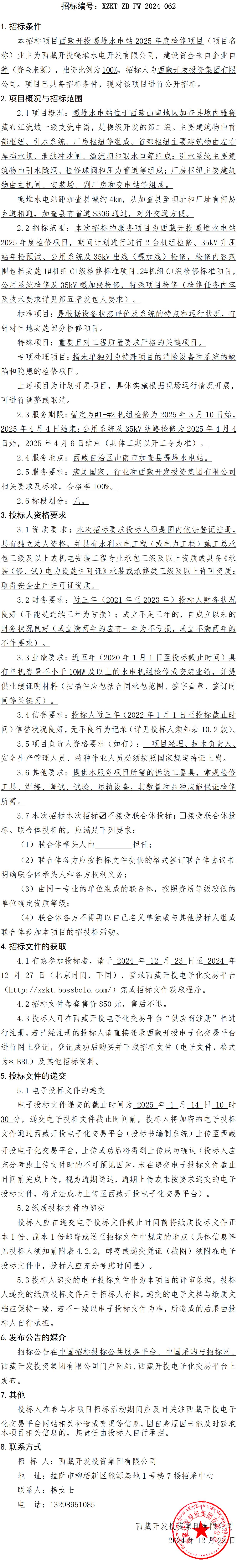 西藏開投嘎堆水電站2025年度檢修項(xiàng)目招標(biāo)公告