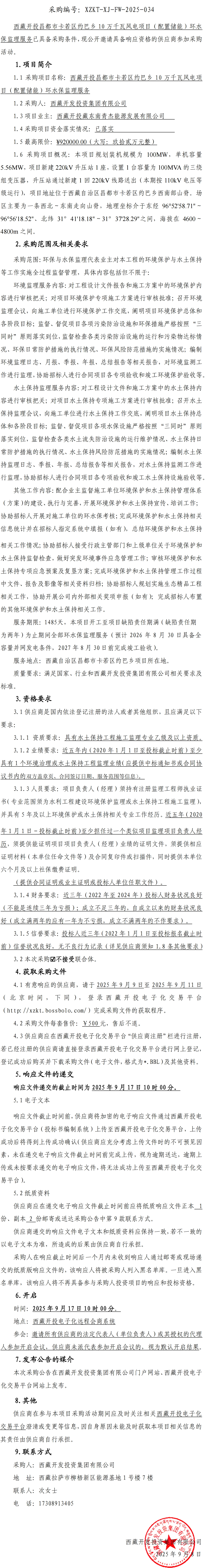 西藏開(kāi)投昌都市卡若區(qū)約巴鄉(xiāng)10萬(wàn)千瓦風(fēng)電項(xiàng)目(配置儲(chǔ)能)環(huán)水保監(jiān)理服務(wù)詢比采購(gòu)公告